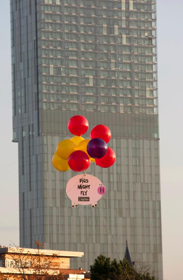 Meanwhile, the rest of the team was working on iPhone games. There were some really talented designers and developers there – and they produced some great games they were rightly very proud of. They made a game called Splat (a bit like whack-a-mole) which was one of those addictive games, and they managed to get a local radio station to interview them about it. They also made a game called Pigs Might Fly – and they went all out with the marketing for this one. Alex got some large pig signs printed and attached them to helium balloons and sent them flying around Manchester City centre. They got everyone to text the radio station saying things like "I've just seen a flying pig float past my car in Manchester" and they read a few of them out and asked if anyone knew what it was about. Someone then called in to the radio show and went on air to promote the app. I've just found the company Twitter, Flickr and YouTube accounts are still live and it's all there: